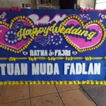 Papan bunga untuk duka cita, pernikahan, peresmian, dan acara resmi lainnya dengan desain rapi serta tulisan jelas.